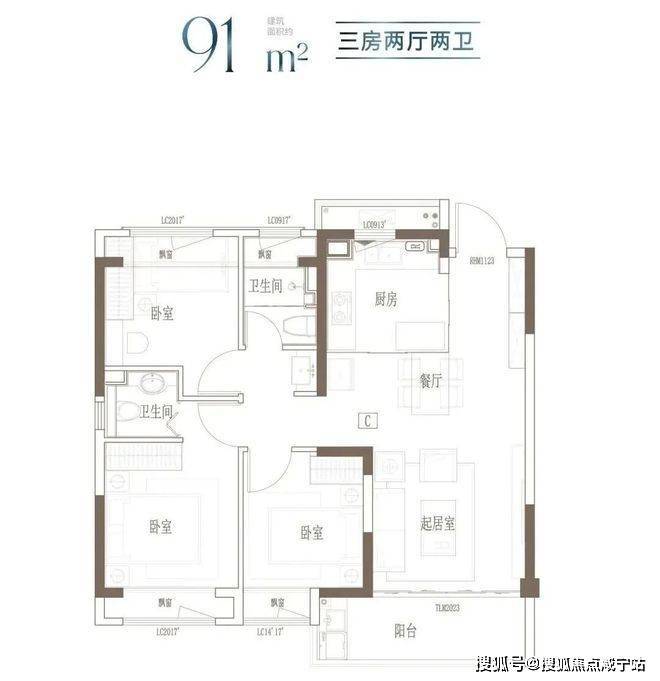 建面约91㎡-121㎡ 3房2厅2卫;这几个户型都是3房的设计,满足想一步到位的购房者。3开间朝南+客餐厅连通阳台+全卧室飘窗,以及套房式主卧设计+2卫,即使是三代同堂,也能让生活从容。