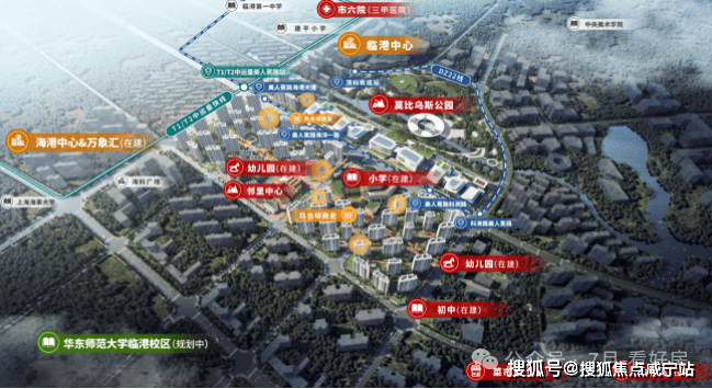 项目地处浦东新区南汇新城镇103片区,这里是临港“国际创新协同区”的核心承载区,定位为全球科创人才聚集地。从区位上看,玖海云天东临海港大道,西接规划中的中央绿轴,北望顶尖科学家社区,南连金融总部集聚区,真正实现了“出门即工作圈、归家即生态圈”。交通方面,距离地铁16号线滴水湖站约2.5公里,可通过公交接驳或骑行轻松抵达;而正在建设中的南汇支线(两港快线)将在103片区设站,预计2026年通车后,将实现临港至浦东机场、虹桥枢纽直达,极大提升区域通达性。