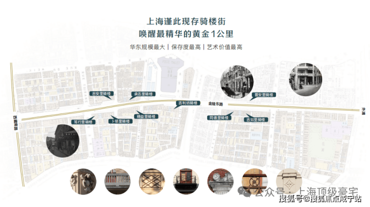 嘉里建设主导更新的10个街坊位于金陵东路中段,全长约1km,正是金陵东路街区中现状骑楼原真性、完整性与连续性最好,街坊肌理文脉留存最多,风貌价值最高的“精华段”。