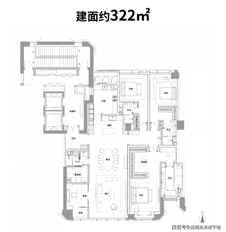 以建面约322户型为例: