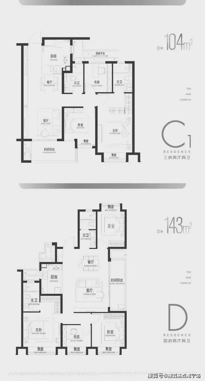 C2户型104㎡及D户型143㎡▼