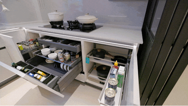 多功能水槽龙头轻松切换用水模式,滨特尔前置过滤器+末端直饮水+中央净软水机,全屋净水呵护家人饮水健康,还有线形凉霸默默为烹饪者送来清凉。所有展示橱柜皆为交付标准,包括上柜、下柜、拉篮、随心抽,以及特别定制的飘窗水槽与水槽柜——每一处细节,都为真实的生活而考虑。