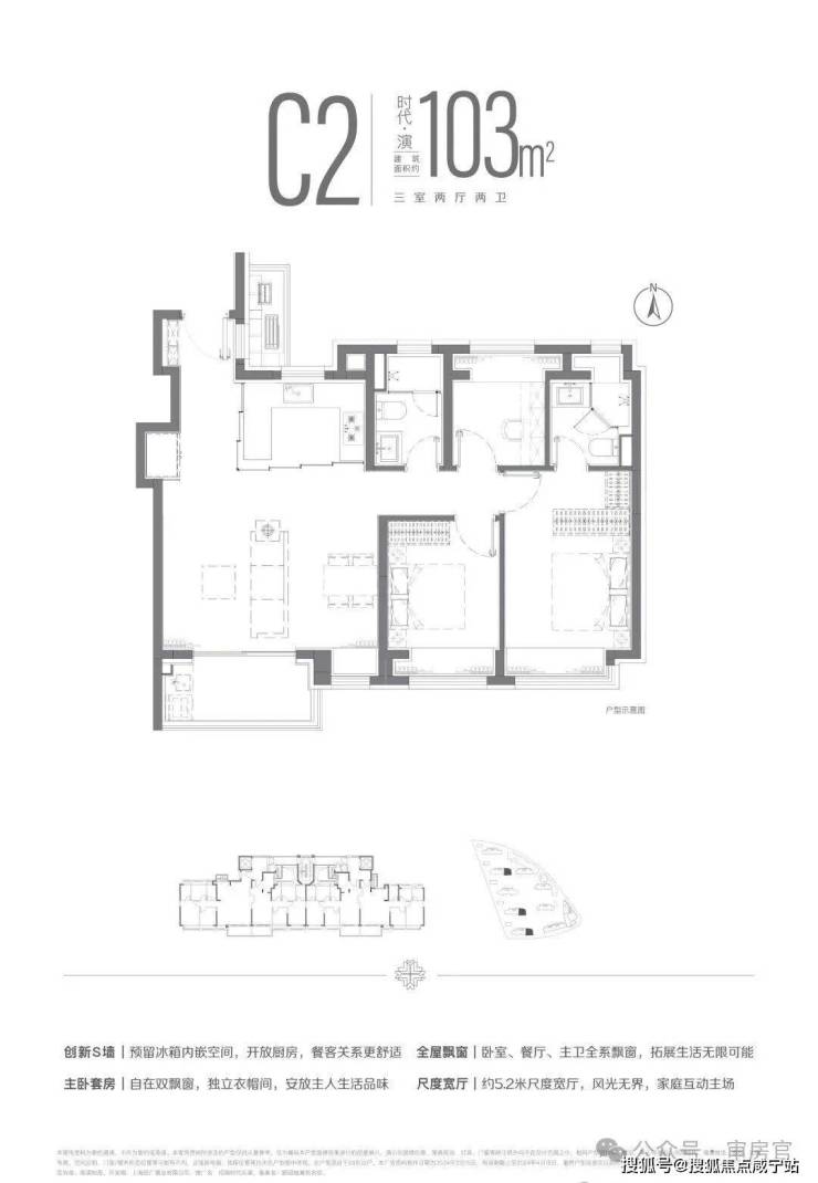 建面约103㎡三房:南北通透+大横厅设计,满足家庭成长需求7;