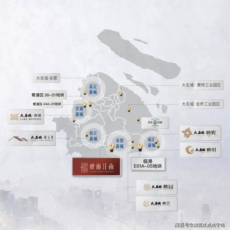 紧跟城市发展规划、与五大新城同频共振,大名城十子映耀上海。传承资金系臻贵基因,大名城携手全新高阶著作【映】系产品,首度献礼奉贤庄行古镇。