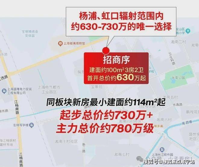整个高境、淞南目前板块内只有2大新房。除了招商序以外,另外一盘最小的户型建面约114㎡起,3楼的总价就已经高达约750万+。