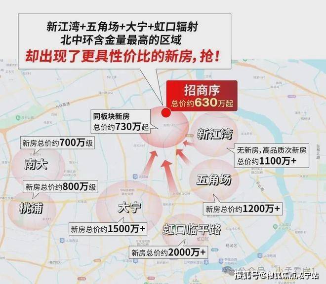 一方面,这里是杨浦新江湾、五角场;虹口临平路;静安大宁的下一站,而四大高端豪宅区内的新房门槛大多都在约1200万+,比招商序贵了接近一倍。在大水漫灌之下,招商序所在的区域价值水涨船高,位列宝山第一。