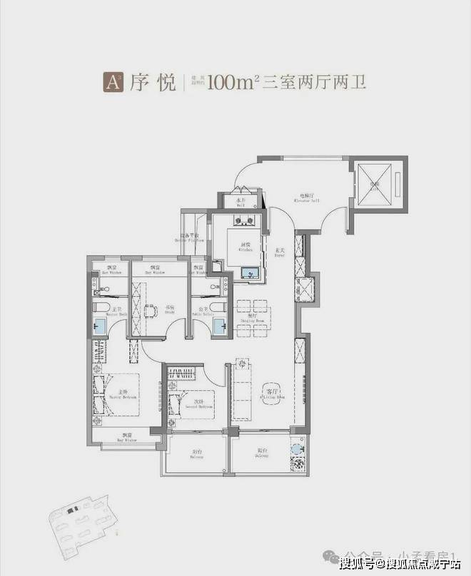 建面约 115㎡「鲲鹏阁」以93% 实得率、三阳台 + 270° 环幕飘窗的设计,将传统115㎡户型的使用空间拓展至可能常规130㎡户型才有的使用空间,更通过LDKB 一体化改造实现 50㎡超级社交场,这种「反常规空间逻辑」打破了「面积即改善」的市场惯性,成为高净值客群抵御周期的硬通货;