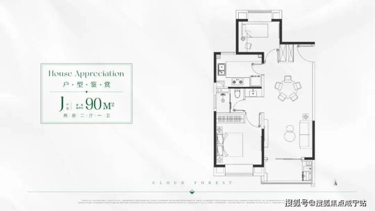 建面约90㎡2房,主卧里面做了一个“灵动空间”,可做衣帽间、书房或者游戏房;卫生间干湿分离,有效提升了使用效率。