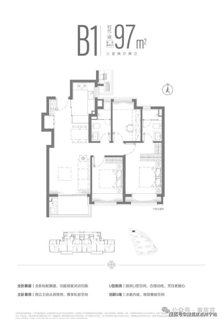 建面约103㎡三房:南北通透+大横厅设计,满足家庭成长需求7;