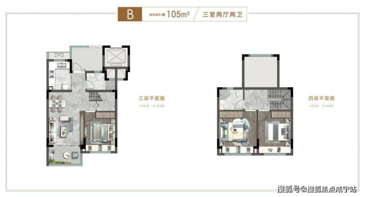 约123平上叠3房户型,共上下两层,全明设计,格局开阔,宽景阳台,上承天空,下承生活。