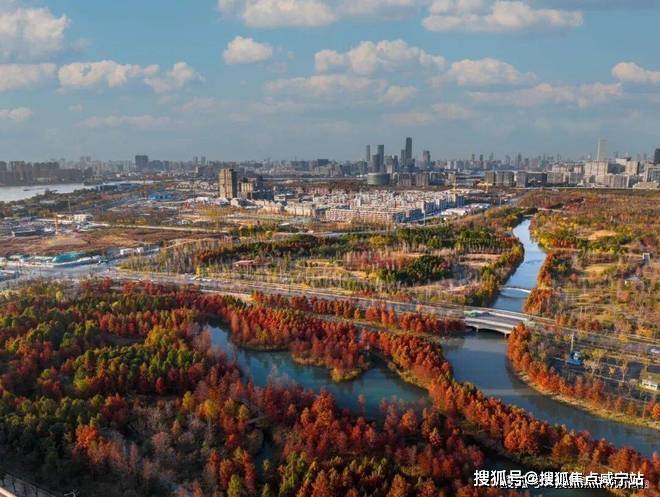 落日时可挽着爱人,一边漫步湖畔遛娃遛狗,一边看天边余霞成绮,湖中碎光点点,人与自然融为一体。