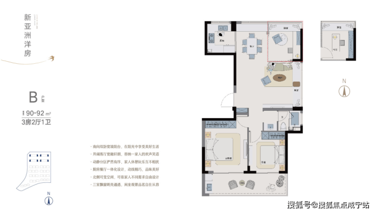 独立家政间+套房式长辈房,动静分层设计1。