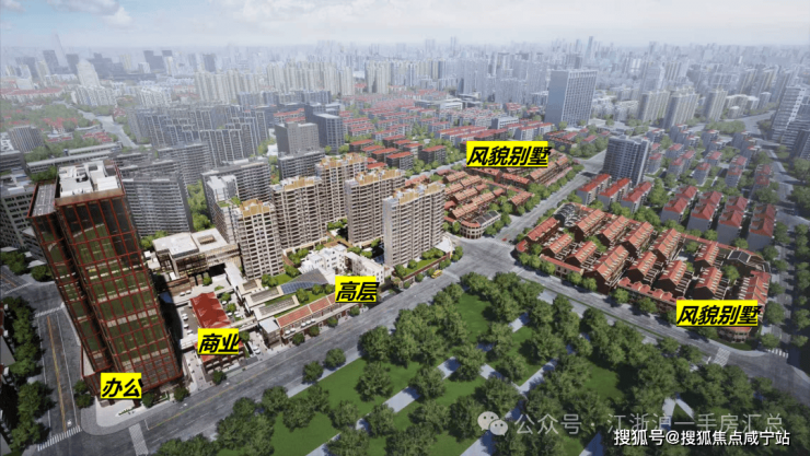 18万方的体量,办公、商业、高层和别墅,自西向东依次展开,即成一体,又互相不造成干扰,实现了 “工作圈、社交圈、生活圈” 的无界融合。