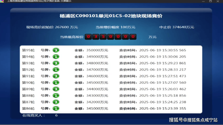 6月19日,2025年五批次土拍,保利发展经过95轮竞价摘得杨浦东外滩01C5-02地块(即保利外滩曜),成交总价350000万元,楼板价95530元/㎡,溢价率30.79%。