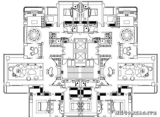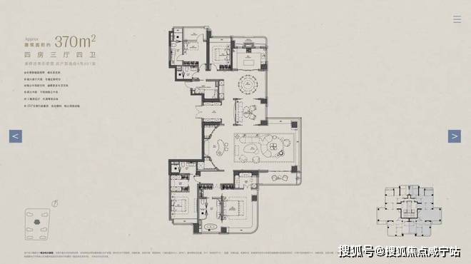 以下为建面约370㎡户型过程稿亮点: