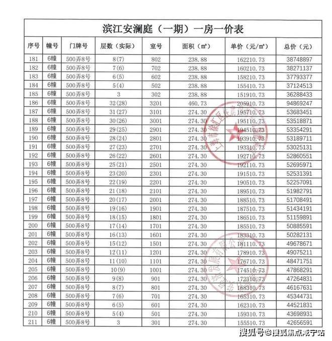【安澜上海】一房一价表: