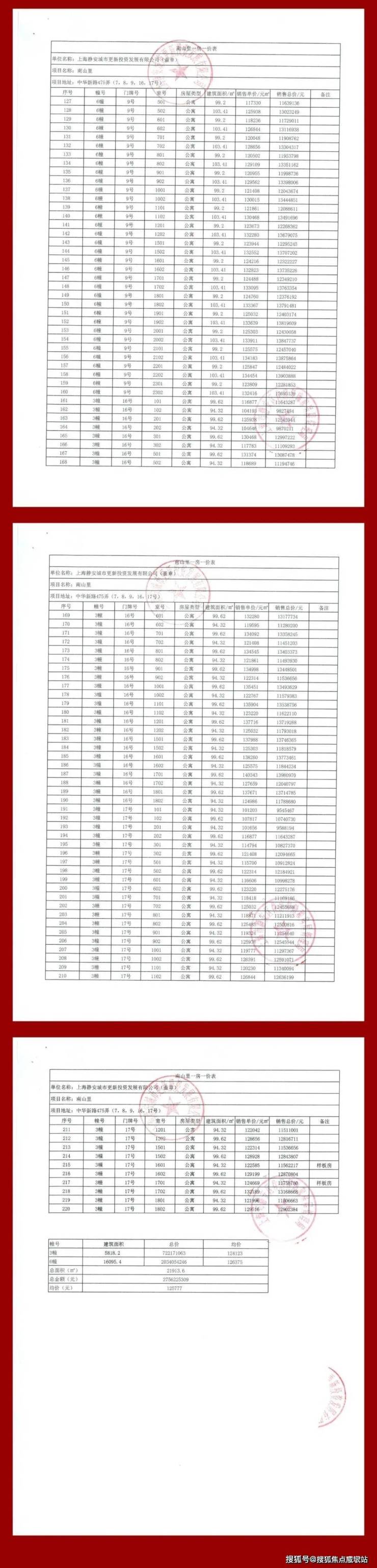 项目一房一价表