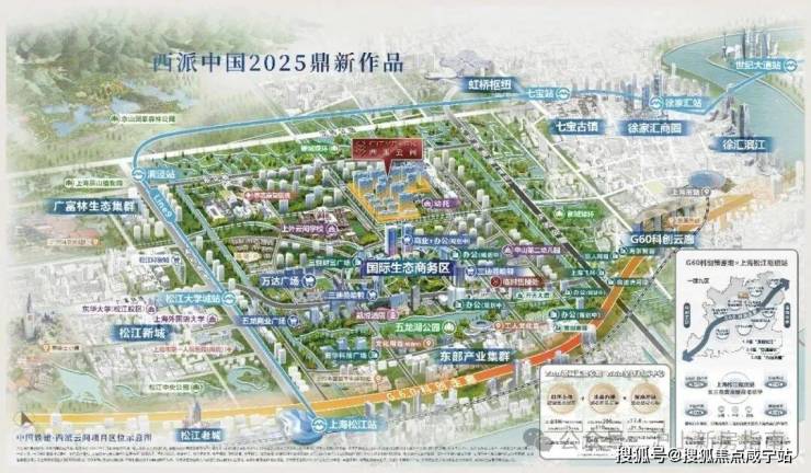 西派云间位于松江新城中山生态商务区,旨在打造一个高端产业集聚、生态环境优美、低碳智慧宜居的未来城市样板。