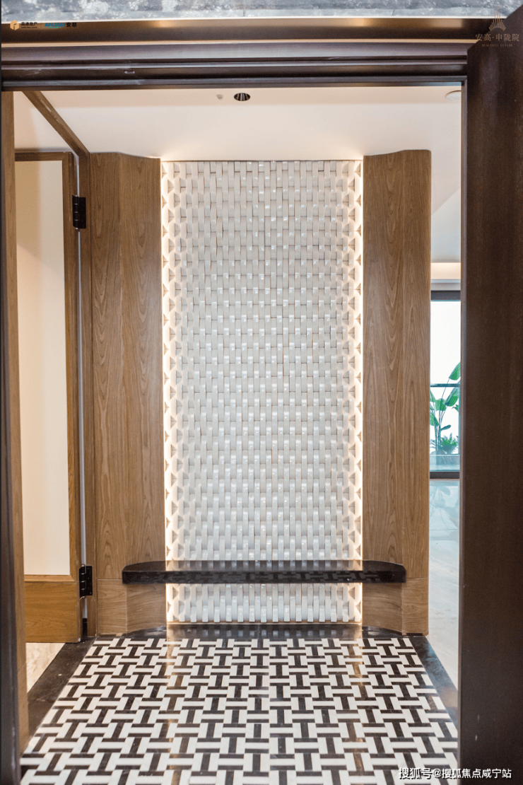 107㎡是一梯两户,甚至就连不起眼的电梯间区域,他们都做到了设计感十足的精装交付,门牌号是金属面板搭配编织纹。