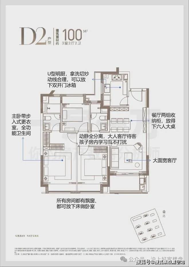 其中,主力建面约100、101平方米的3房2厅2卫:空间舒适度更高,两个卫生间的配置,私密性更好;主卧套房设计,更有步入式衣帽间,让生活更从容。