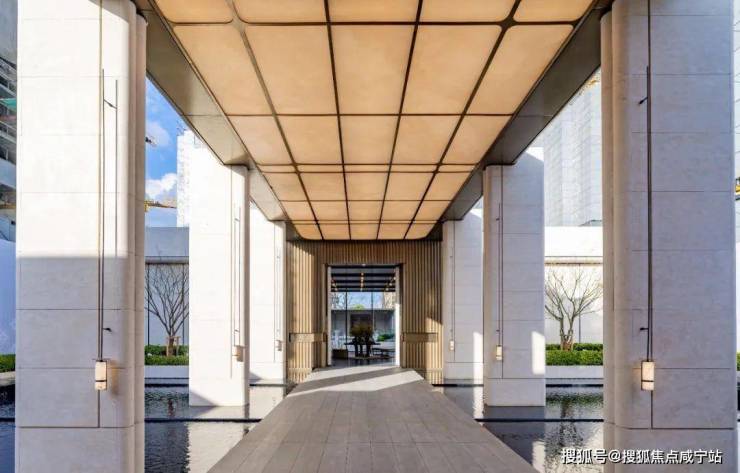 通过迎宾楼,便来到了约20米长的精神游廊,该精神游廊同源招商玺“树宅相守”的设计手法,更致敬建筑诗人斯卡帕“以自然光感去创造时间驻留感”的理念,通过对光线、材质与空间的创新打造,营造充满宁静的归家场域。