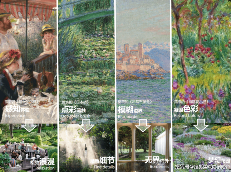 项目还将印象派艺术融⼊生活,将莫奈的《睡莲》、雷诺阿的《花园里的女人》这样的印象派画作融入景观了理念中,打造出多主题的印象派花园。