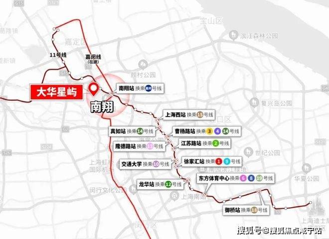 但南翔是11号线和嘉闵线的交汇点,本质是 承担资源交汇的中心枢纽 ,在能级上就碾压其他外环附近板块。