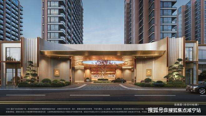 在选材上,项目采用 米色石材、铝板和金属镶框 进行多元混搭,重点刻画单元入口、入户大堂等细节,质感非常丰富。尤其 艺术感的弧形镜面立面 ,与门前蜿蜒的水岸风光相呼应,让建筑仿佛拥有了呼吸感和浪漫的情绪。