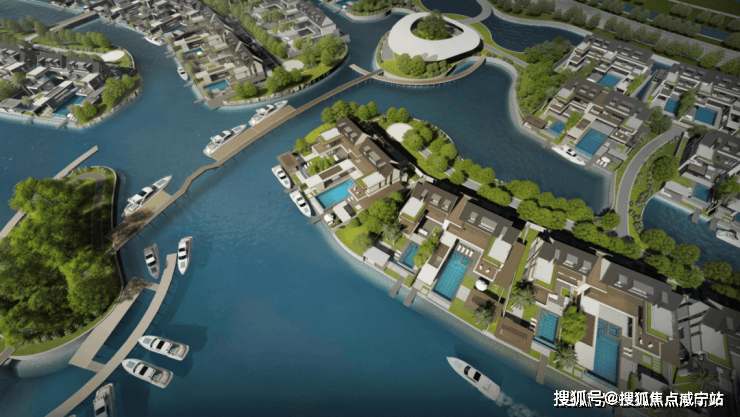项目从此前曝光的设计方案就可以看出亮点,每一排别墅前都有一条渠道,引入水系,可以停游艇.