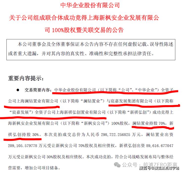 2025年9月25日,中华企业联合宸嘉发展以29.87亿元收购上海新枫安公司100%股权,正式入局徐汇东安旧改核心地块开发。