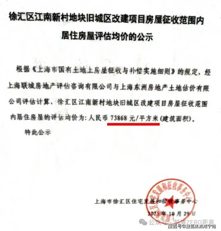 刚刚公示的江南新村旧改征收评估均价为73868元/㎡,高于去年东安一、二村的72822元/㎡。