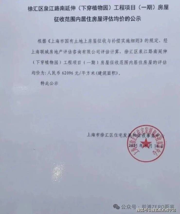 泉江路南延伸(下穿植物园)工程项目(一期)房屋征收范围内居住房屋评估均价公示: 62096元/m²!本地块房屋征收范围为徐汇区长桥街道南起上中路,北至百色路,具体门牌号为:百色路133弄16-24号。小区南侧为中环路,北侧靠近上海植物园