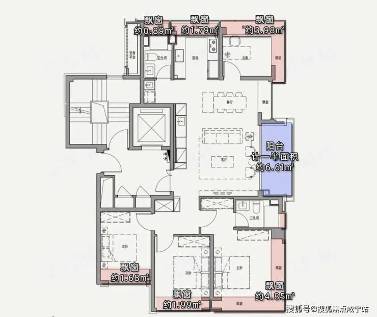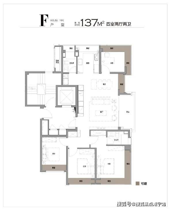 超高得房率户型,飘窗可砸,100㎡A户型,砸完多出约6㎡;137㎡F户型,砸完多出约11㎡,附赠多出来的空间,未来可随家庭需求,灵活延伸。