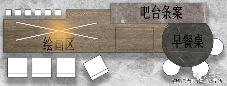电视矮墙的背后空间,可以利用为一个西式岛台的手工桌,一两个人吃点早餐、洗个水果,都能解决。