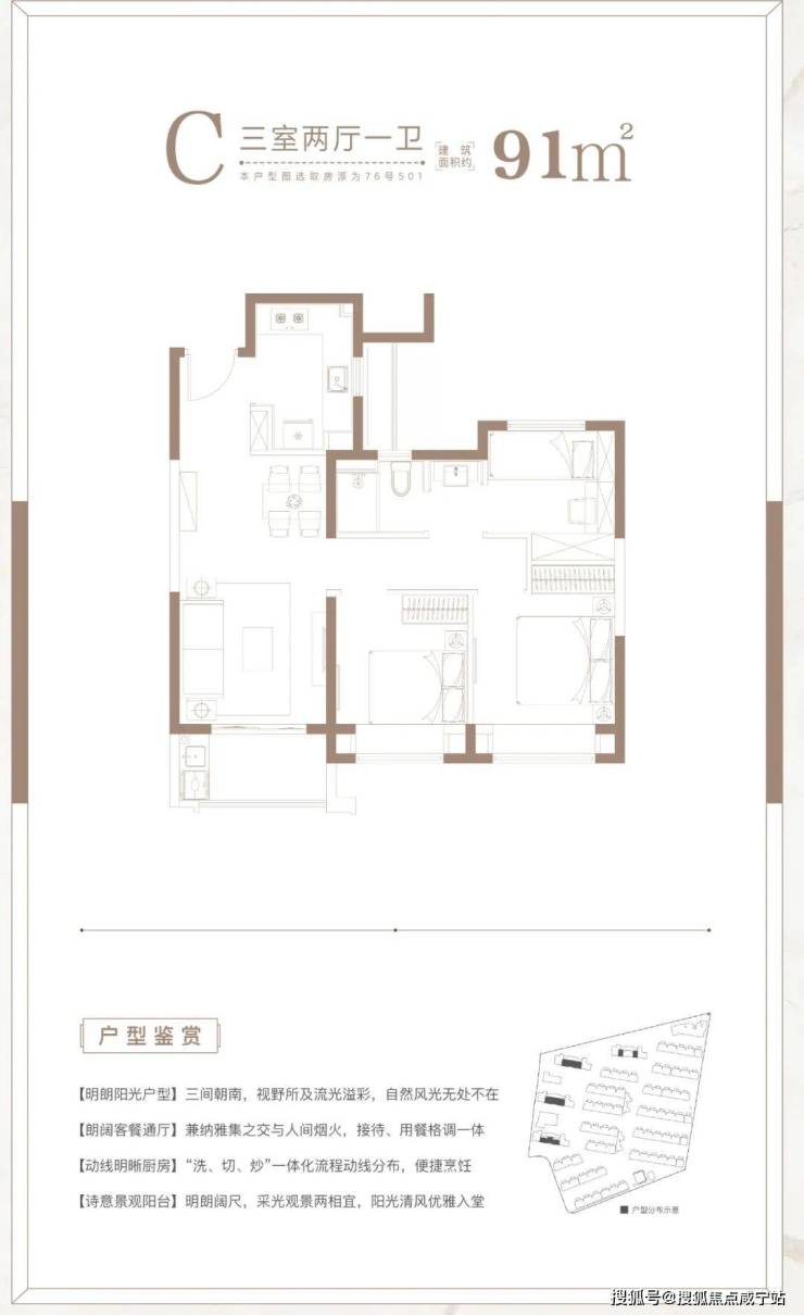 首先我们来看看户型,建面约91-101㎡3房高层&约91-144㎡叠墅: