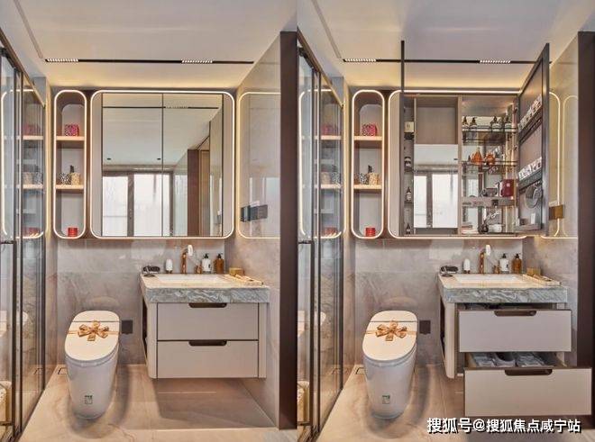 保利天奕特别关注到女性的生活需求,专门在卫生间配备了科勒美颜龙头、美妆镜柜、美妆冰箱,采用“顶+面双补光照明”,能把“女本位”需求做到如此细致,目前没有几个项目能做到!