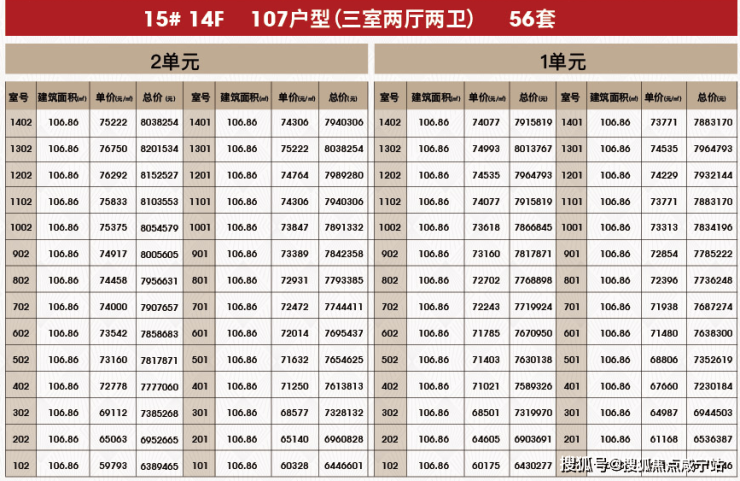 附一房一价表: