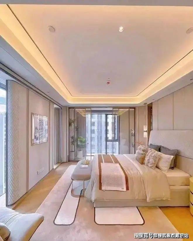 大面款、短进深,睥睨市场上大部分的产品,将采光面做到极致,宽幅阳光倾泻而入,日光洒落,没有一处阴影。动静分离全套房设计生活区朝南270°天幕景观
