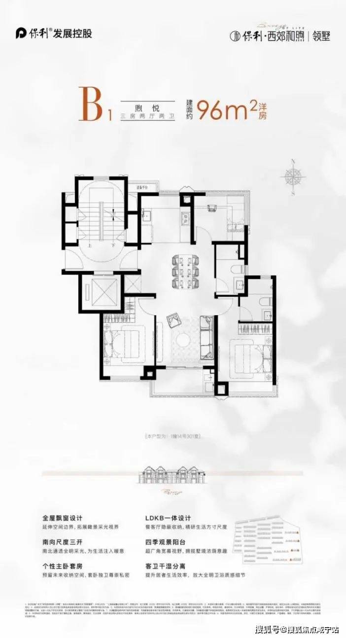 建面约 96㎡的 洋房户型,以三房两卫的全能格局。LDKB 一体化设计,打破空间边界,让餐客厅与阳台流畅相连,成为家庭互动、宴请宾客的活力场域 。全屋飘窗延展空间,引阳光与风景入室,三开间朝南、南北通透。北向多功能间,附带270°广角视界,让每一寸生活都浸润在风景里。主卧套房预留收纳空间,给予主人私密尊崇。从起居到观景,从社交到休憩,全方位适配品质生活需求,是洋房里的理想栖居范本 。