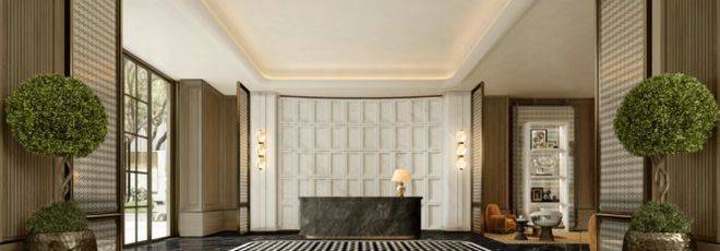 社区主入口更是兼具豪华酒店与海派元素设计风格,挑高约6米的入户大堂、水系景观与艺术家共创作品交相辉映,奢华感和高级感拉满!