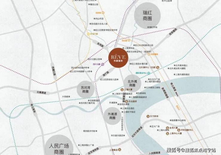 商圈叠加:南京东路-外滩商圈、人民广场商圈、苏河湾商圈、北外滩商圈、瑞虹商圈环绕叠加