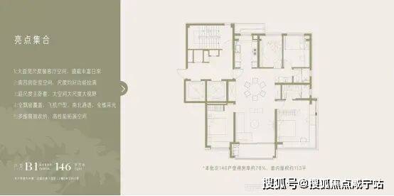 · 146㎡四房:真四房功能性+奢阔尺度,适配多孩家庭或三代同堂需求。