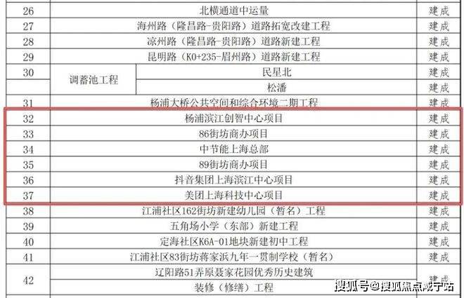 这份来自杨浦区官方公示的项目清单,清晰标注了从“新开工”“在建”到“建成”的全周期进度。其中, 抖音、美团、滨江创智中心的全面建成,将杨浦滨江的发展确定性,从蓝图实实在在落地为实景。