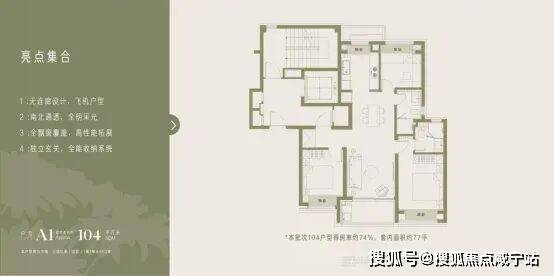 户型几乎 无连廊设计 ,有效规避传统连廊户型的采光不足与隐私泄露问题,打造全明通透的飞机户型,得房率与居住舒适度均优于同类型产品。