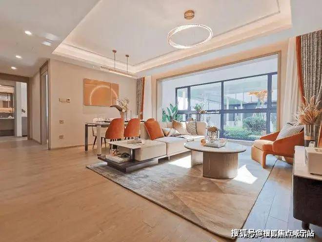 客厅设计了大面积落地窗让光线更多的进入室内空间,使自然精致一览无余。