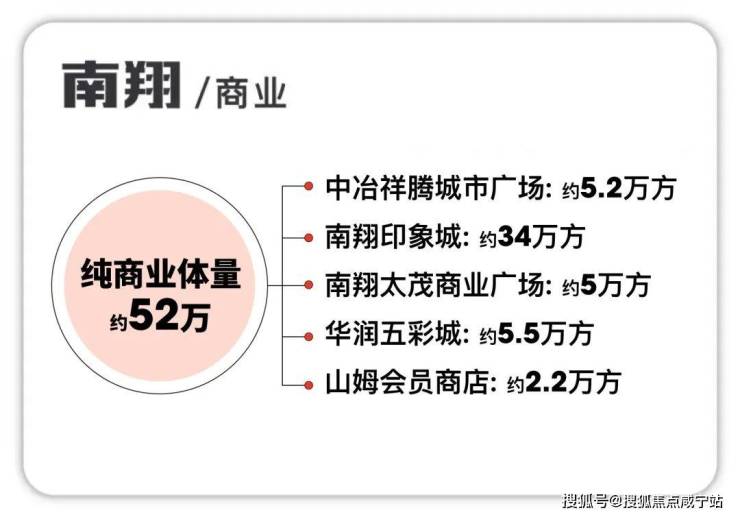商业购物: 南翔如今已经开业了 四大商场+一座山姆,总体了高达约52.2万方。