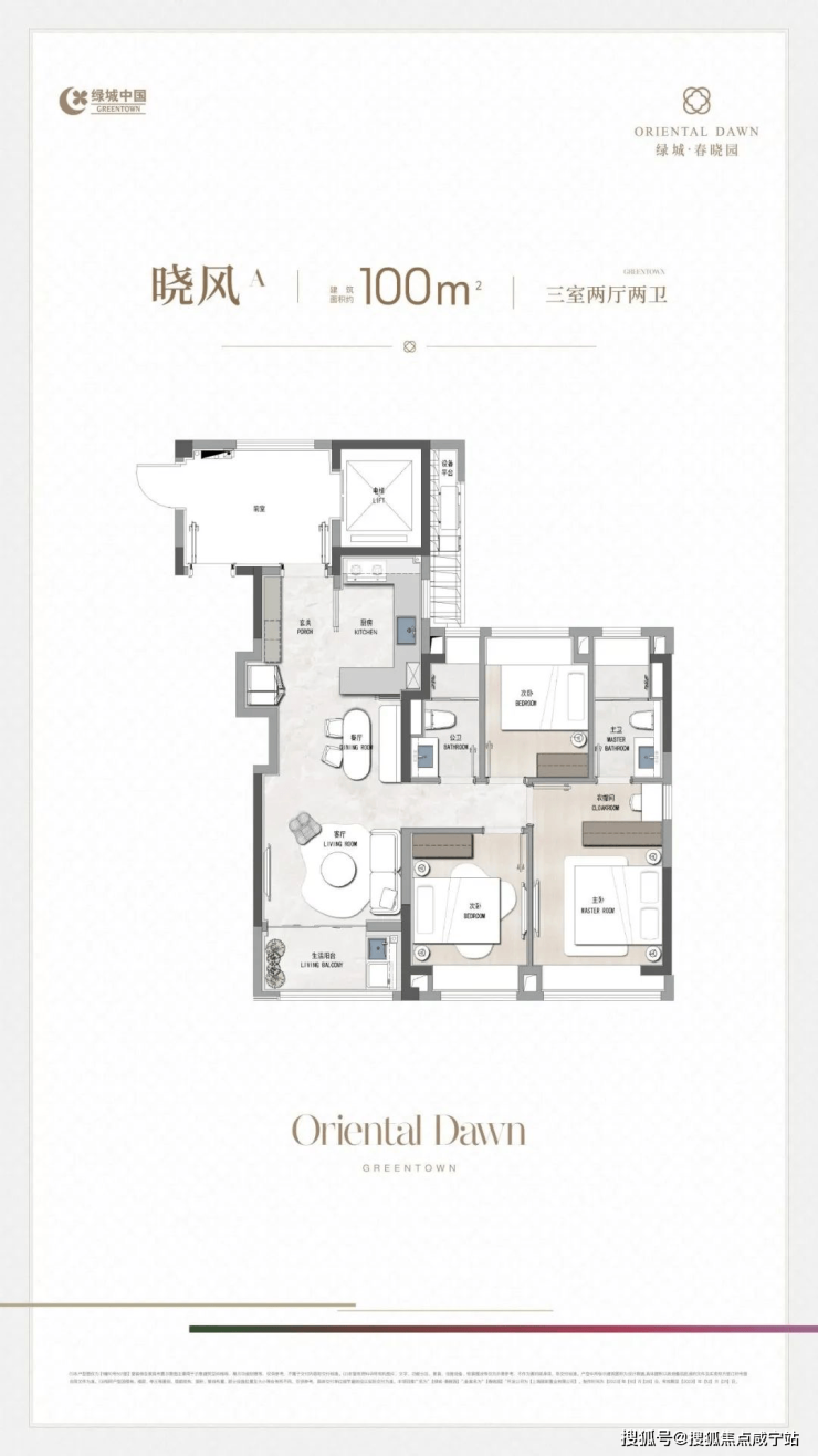 「晓风B丨 100㎡ 3房2厅2卫」