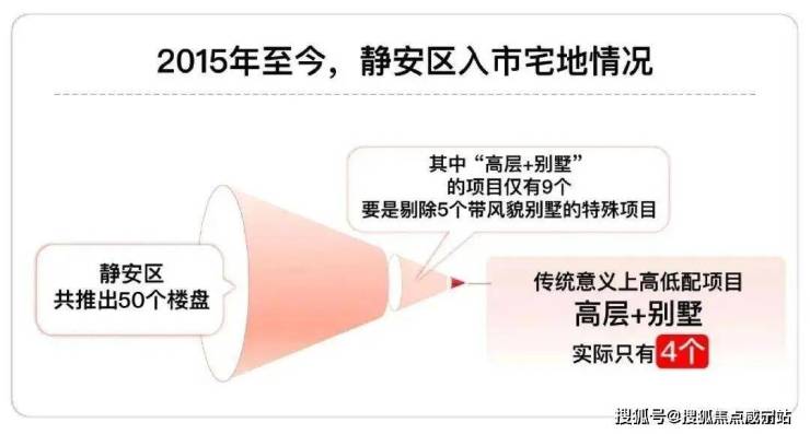 自2015年至今,静安全区累计推出约50个楼盘,其中“高层+别墅”规划的项目仅9个;若剔除5个风貌保项目,传统高低配产品,其实只有4个。