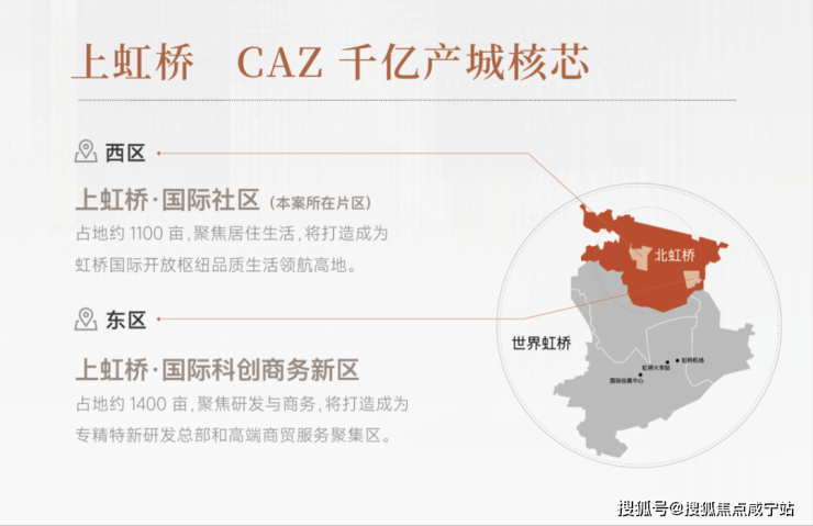 项目所处的北虹桥片区正在经历快速的发展,作为大虹桥科创功能的重要载体,这里正在加速形成优质的教育、商业及生态环境。项目本身也在该区域的发展风口上,未来潜力巨大。北虹桥的规划包括“一城、一湾、一区”产城融合模式,随着高端商贸服务功能的落地,这里将成为新的国际化社区。