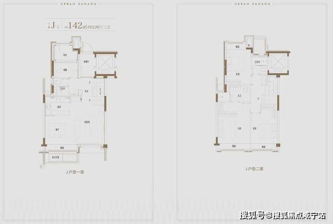 建面约139上叠户型,三层是会客区,四层是居住区,阳台+露台+多个飘窗设计,附加空间非常大,在别墅类产品中实属罕见!